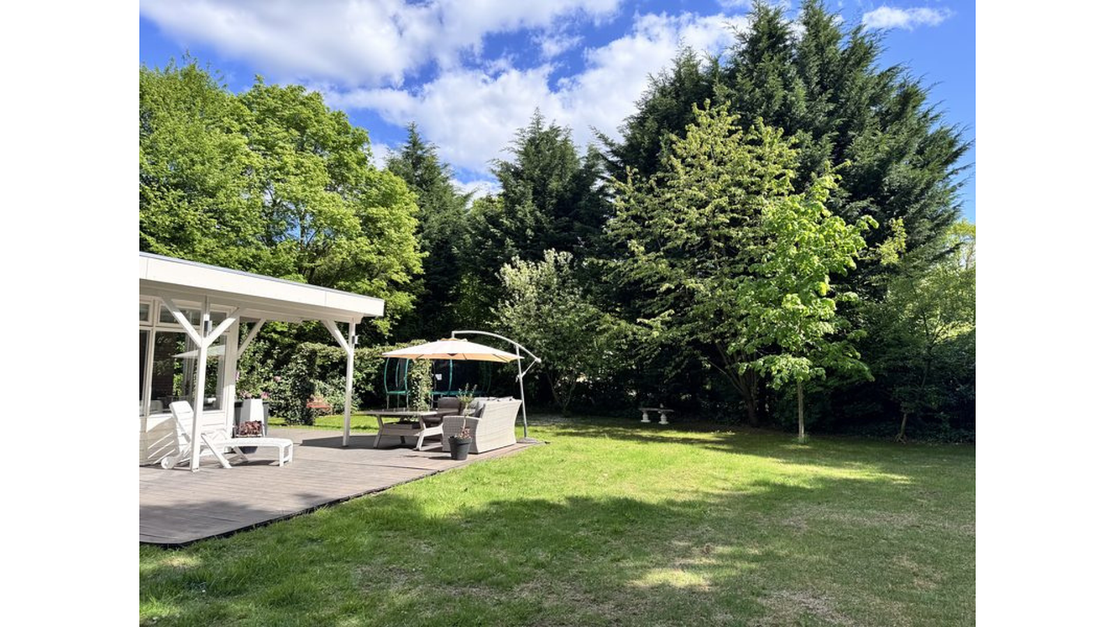 De tuin is een waar speel- én relaxparadijs. Kinderen kunnen zich uitleven op de grote trampoline, terwijl jij geniet op de comfortabele loungeset met een drankje in de hand – tot in de late uurtjes. Dankzij de natuurlijke, groene omheining geniet je van rust, ruimte en volledige privacy. Of je nu op zoek bent naar quality time samen, plezier met het gezin of gewoon ongestoord ontspannen in de natuur – deze bungalow biedt alles wat je nodig hebt.