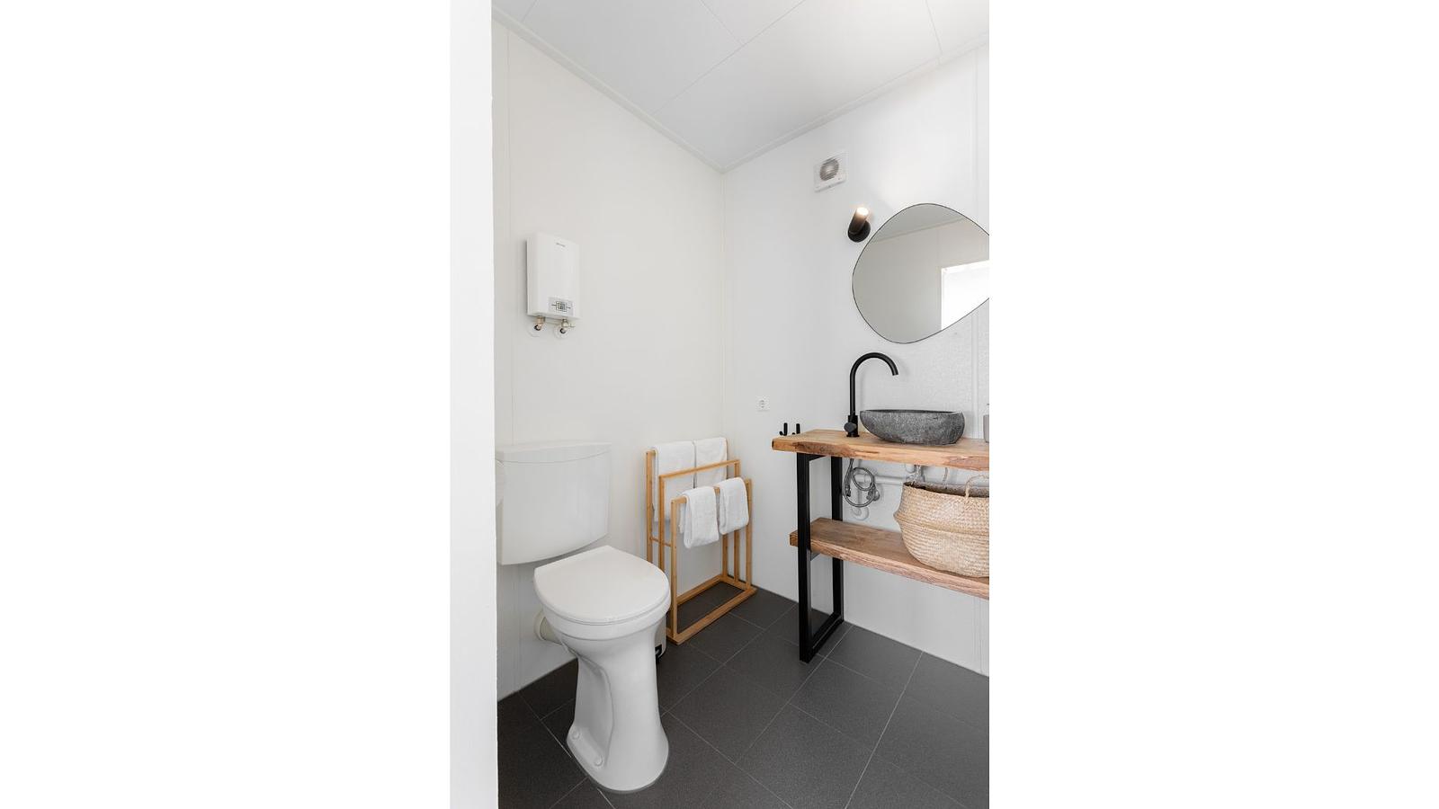 We hebben heerlijke dagen gehad in de Tiny house! Bij binnenkomst was de accommodatie zeer schoon en rook het ook lekker fris. Wat we heel attent vonden was dat er twee stukjes taart in de koelkast stonden en dat er een lief kaartje met een flesje wijn op tafel was gezet. Echt heel gastvrij! Het huisje is van alle gemakken voorzien en het uitzicht op de vijver is echt geweldig! Elke ochtend met dat uitzicht wakker worden en ontbijten is een feestje! Het huisje is heel gezellig en modern ingericht. Ondanks dat het een Tiny House is, voelt het toch heel ruim en heb je meer dan voldoende plek als je met twee personen bent. Verder vonden we het ook heel fijn dat er praktische producten als handzeep, vaatwasblokjes, afwasmiddel en schoonmaakdoekjes aanwezig waren, dat is lang niet op elk vakantiepark het geval. We vonden het achteraf jammer dat we niet nog een nachtje extra hadden geboekt, want de tijd is voorbij gevlogen. Wij komen zeker nog een keer terug!